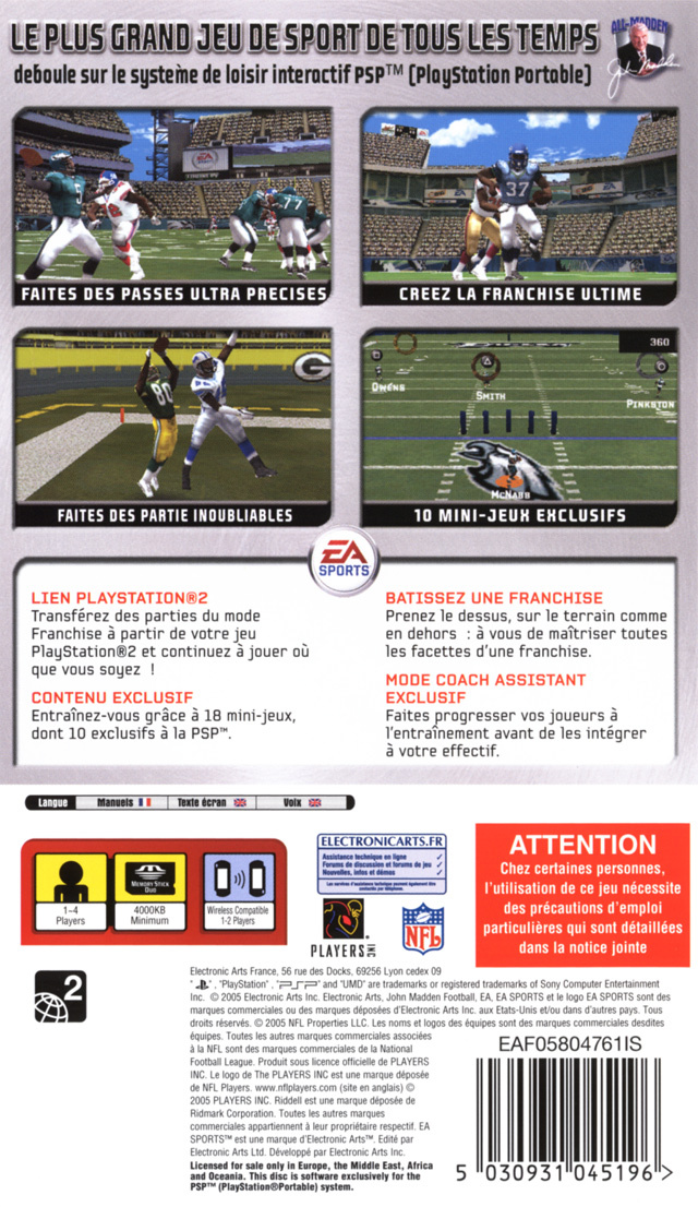 Madden NFL 06 sur PSP - 1 - images, jaquette, scans, screenshots