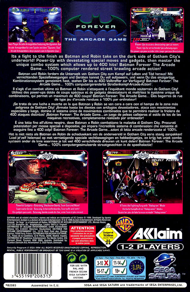 Batman Forever : The Arcade Game sur Saturn - 1 - images, jaquette, scans, screenshots