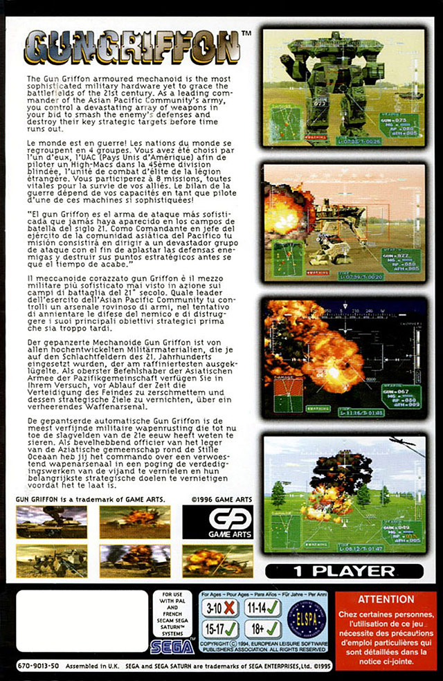 Gun Griffon sur Saturn - 1 - images, jaquette, scans, screenshots