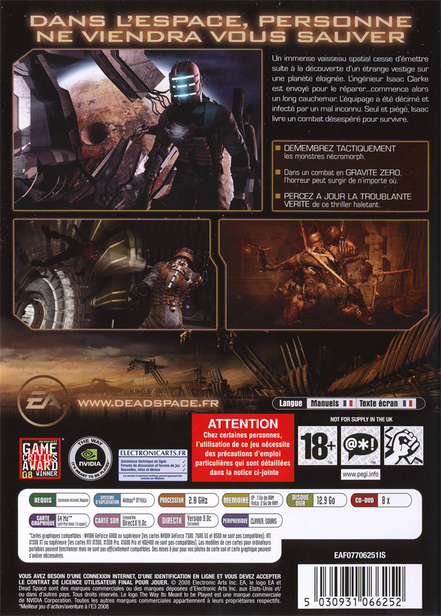 Dead Space sur PC - 1 - images, jaquette, scans, screenshots