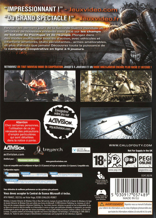 Call of Duty : World at War sur PC - 1 - images, jaquette, scans, screenshots