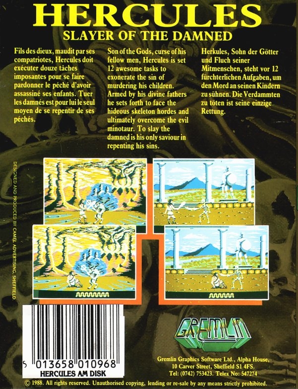 Hercules : Slayer of the Damned sur Amstrad-CPC 464 - 1 - images, jaquette, scans, screenshots