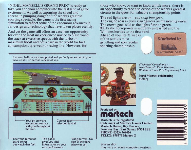 Nigel Mansell's Grand Prix sur Amstrad-CPC 464 - 1 - images, jaquette, scans, screenshots