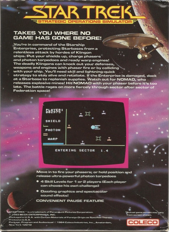 Star Trek : Strategic Operations Simulator sur Colecovision - 1 - images, jaquette, scans, screenshots