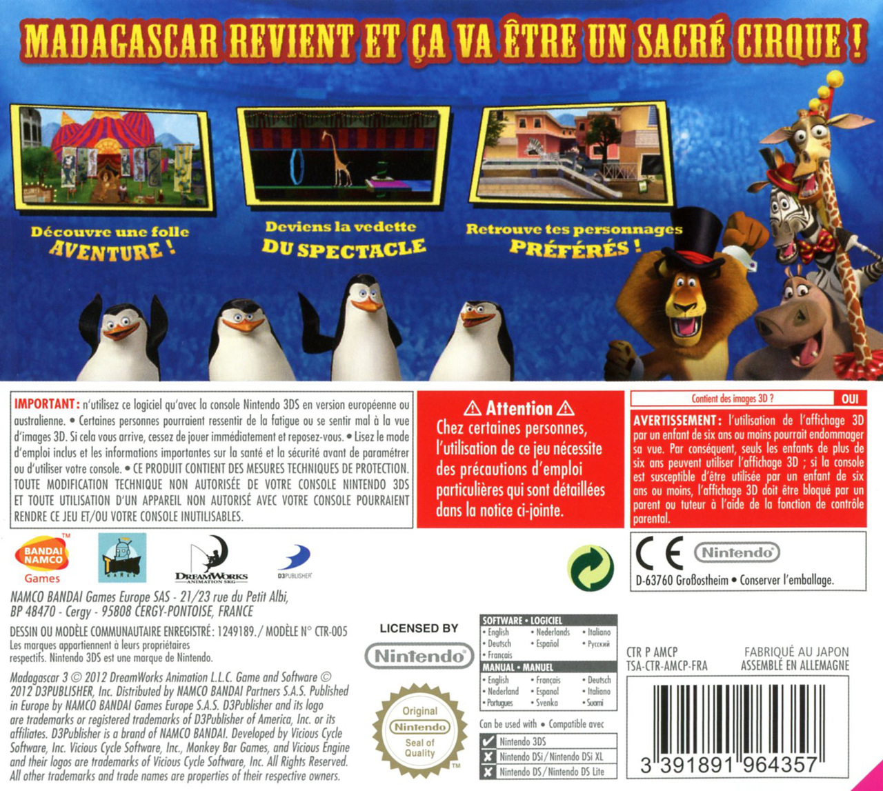 Madagascar 3 : Bons Baisers d'Europe sur 3DS - 1 - images, jaquette, scans, screenshots