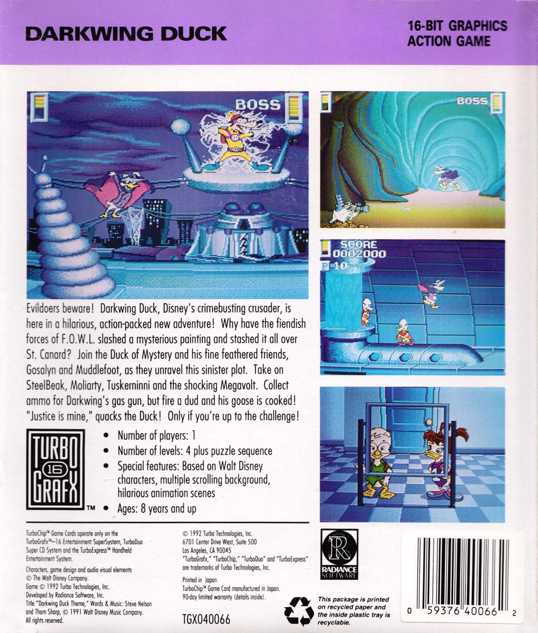 Disney's Darkwing Duck sur PC-Engine Hu-Card - 1 - images, jaquette, scans, screenshots