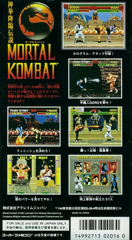 Mortal Kombat : Shinken Kourin Densetsu sur SNES - 1 - images, jaquette, scans, screenshots