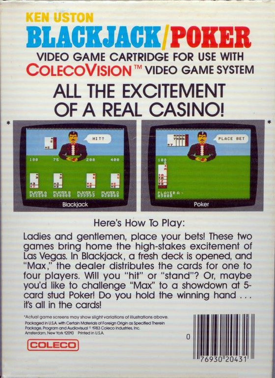 Ken Uston BlackJack / Poker sur Colecovision - 3 - images, jaquette, scans, screenshots