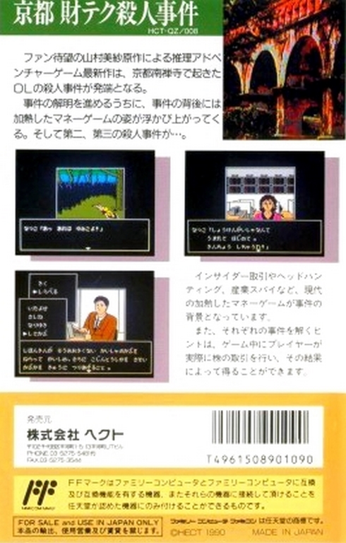 Yamamura Misa Suspense : Kyouto Zaiteku Satsujin Jiken sur NES - Famicom - 1 - images, jaquette, scans, screenshots