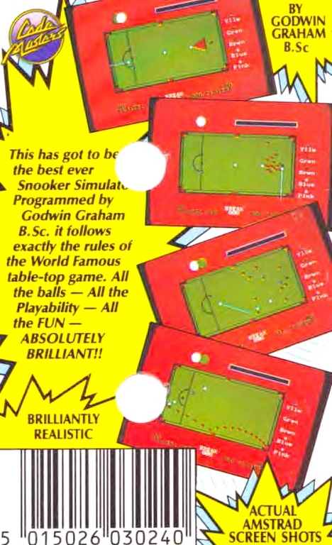Professional Snooker Simulator sur Amstrad-CPC 464 - 1 - images, jaquette, scans, screenshots