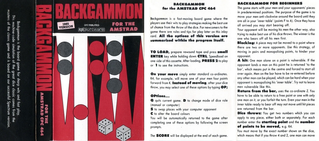 Backgammon sur Amstrad-CPC 464 - 1 - images, jaquette, scans, screenshots