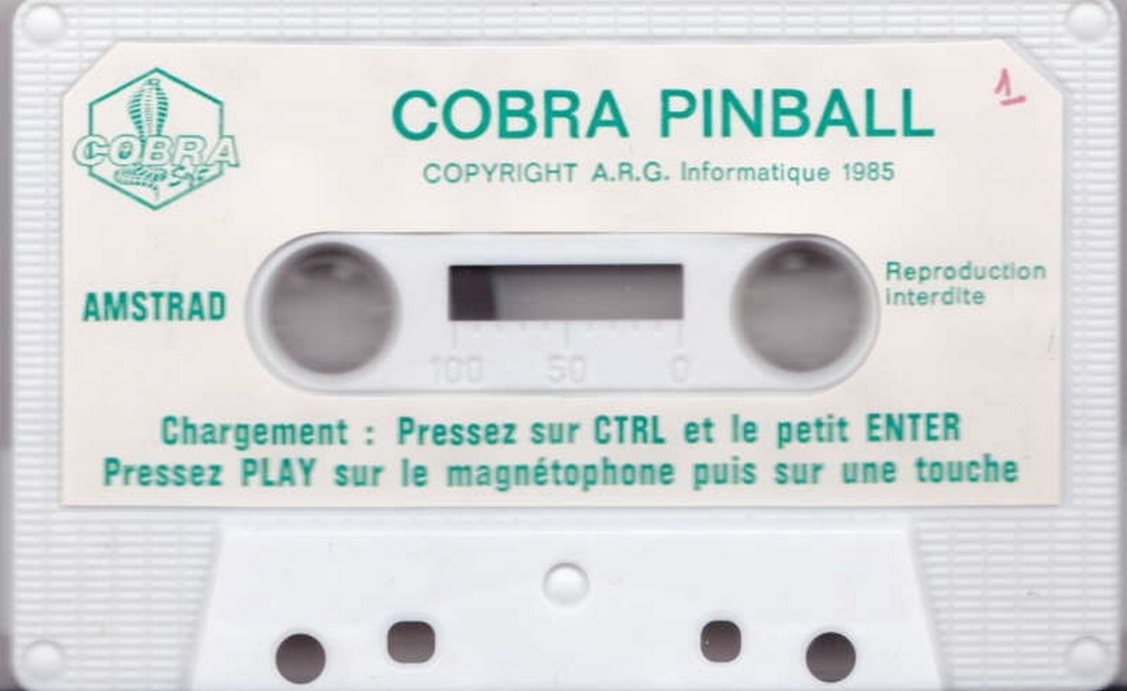 Cobra Pinball - Réédition sur Amstrad-CPC 464 - 3 - images, jaquette, scans, screenshots
