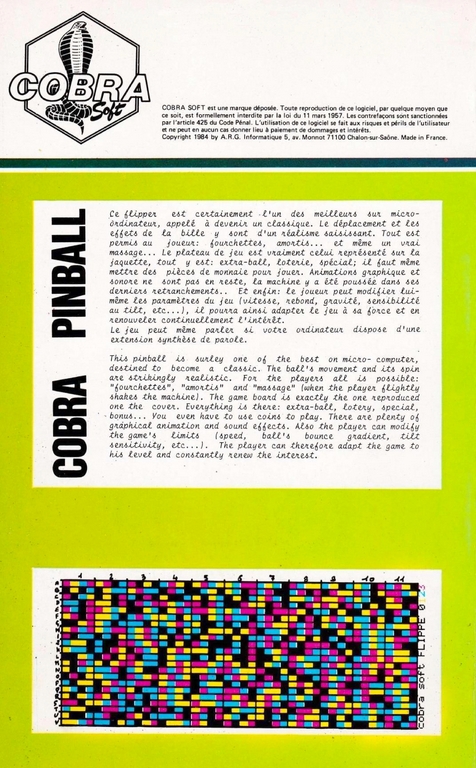 Cobra Pinball + Night Boosters sur Amstrad-CPC 6128 - 1 - images, jaquette, scans, screenshots