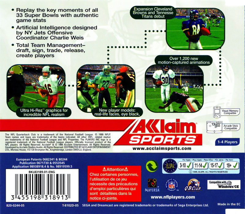 NFL Quarterback 2000 sur Dreamcast - 1 - images, jaquette, scans, screenshots
