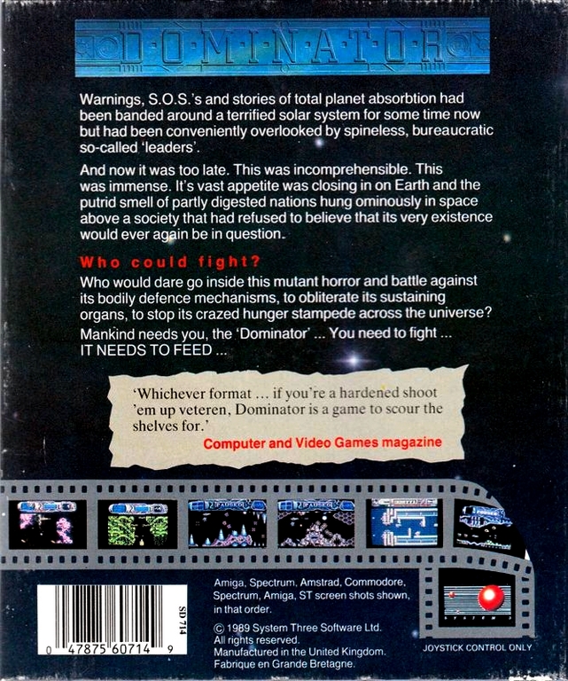 Dominator sur Atari ST - 1 - images, jaquette, scans, screenshots