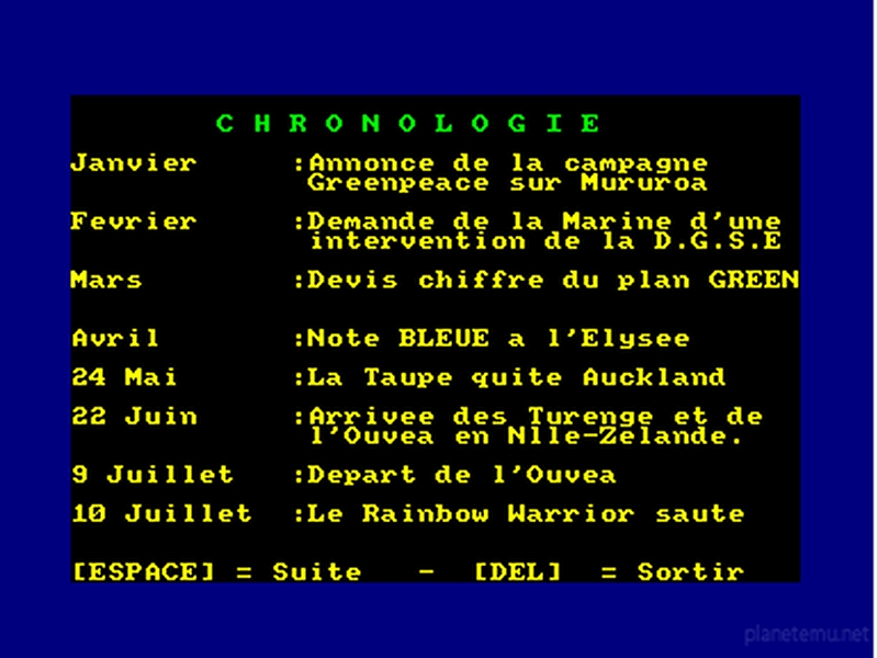 Galerie d'images Dossier G : L' Affaire Du Rainbow Warrior sur Amstrad-CPC 6128
