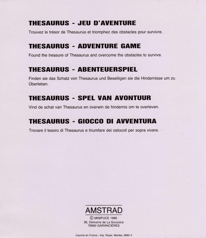 Thesaurus sur Amstrad-CPC 6128 - 1 - images, jaquette, scans, screenshots
