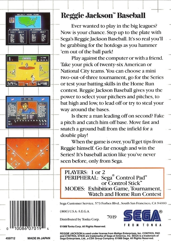Reggie Jackson Baseball sur Master System - 1 - images, jaquette, scans, screenshots