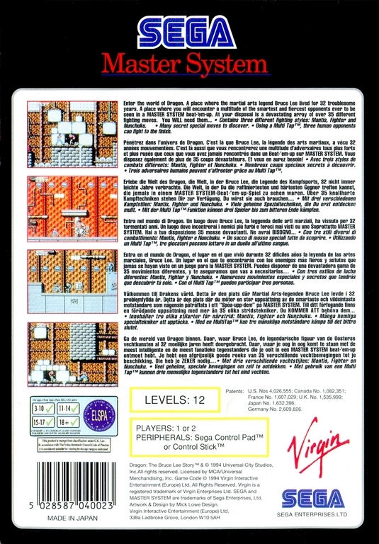 Dragon : The Bruce Lee Story - Master System