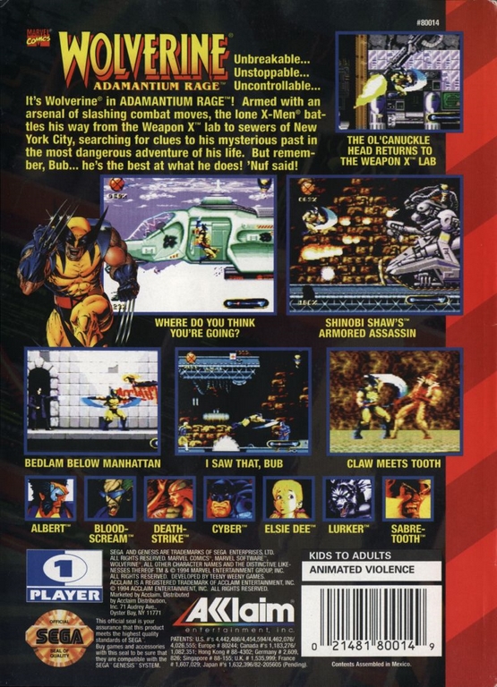 Wolverine : Adamantium Rage - Mega Drive - Genesis