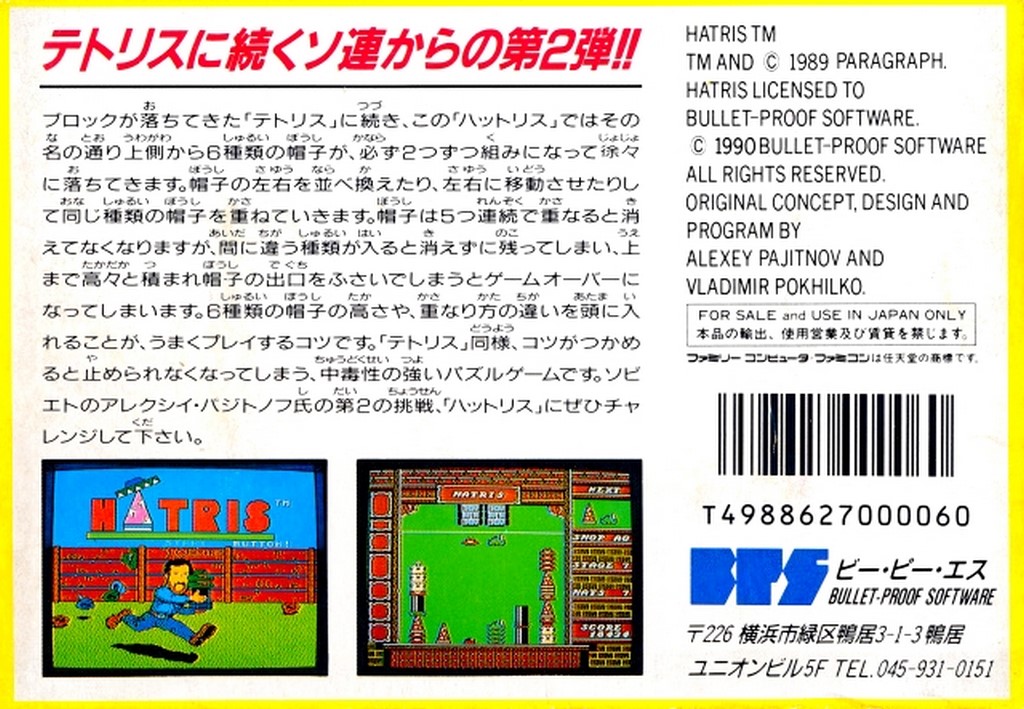 Hatris sur NES - Famicom - 3 - images, jaquette, scans, screenshots