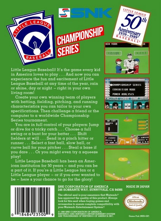 Little League Baseball : Championship Series sur NES - Famicom - 1 - images, jaquette, scans, screenshots