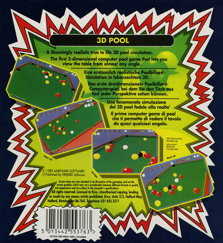 3D Pool : Ré-édition sur Amiga - 1 - images, jaquette, scans, screenshots