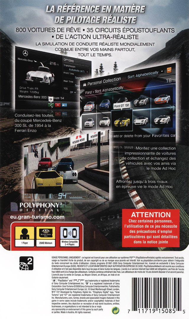Gran Turismo sur PSP - 1 - images, jaquette, scans, screenshots