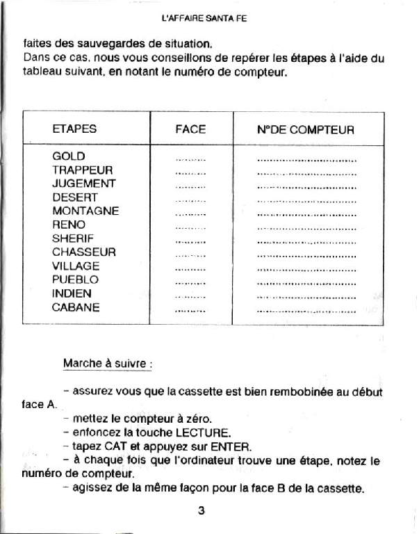 L'Affaire Santa Fe sur Amstrad-CPC 464 - 6 - images, jaquette, scans, screenshots