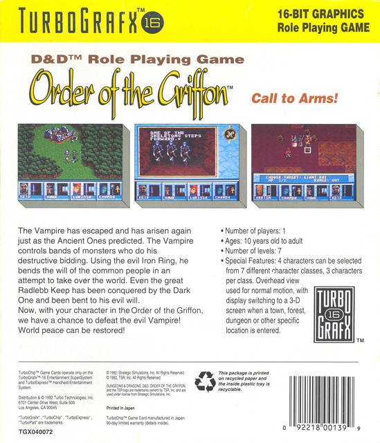 Galerie d'images Dungeons & Dragons : Order of the Griffon sur PC-Engine Hu-Card