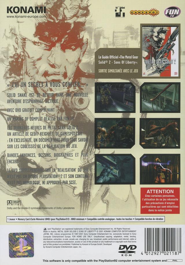 Retour à la fiche de Metal Gear Solid 2 : Sons of Liberty