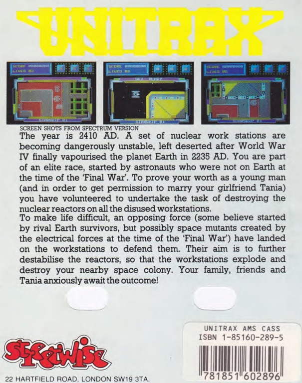 Unitrax sur Amstrad-CPC 464 - 1 - images, jaquette, scans, screenshots