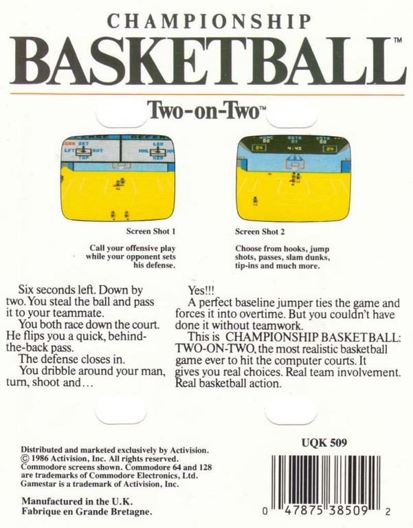 Championship Basketball : Two-On-Two sur Amstrad-CPC 464 - 1 - images, jaquette, scans, screenshots
