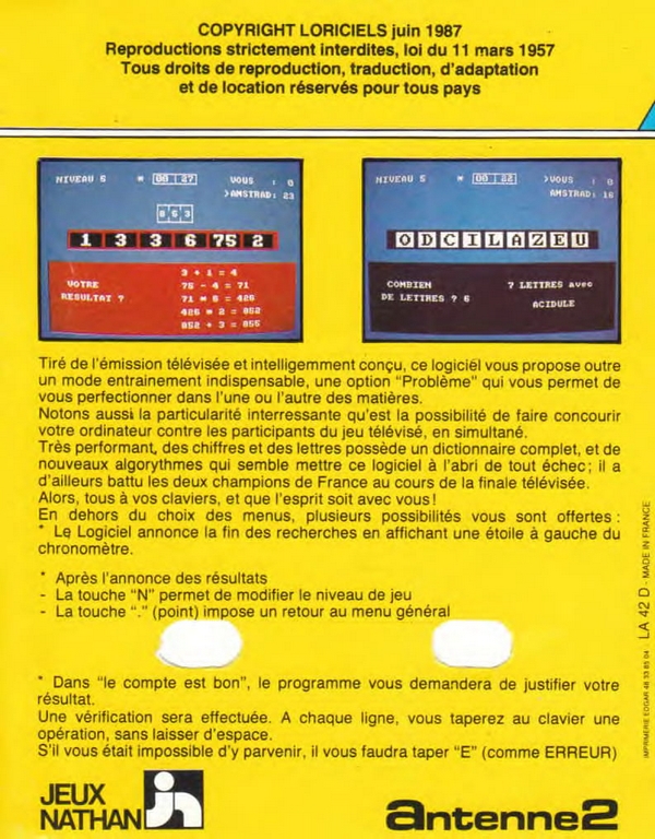 Des Chiffres Et Des Lettres sur Amstrad-CPC 6128 - 1 - images, jaquette, scans, screenshots