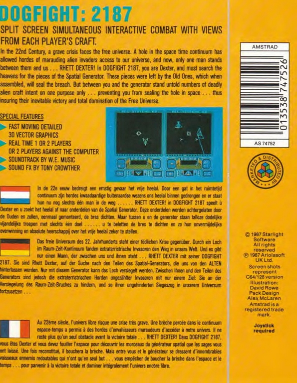 Dogfight 2187 sur Amstrad-CPC 6128 - 1 - images, jaquette, scans, screenshots