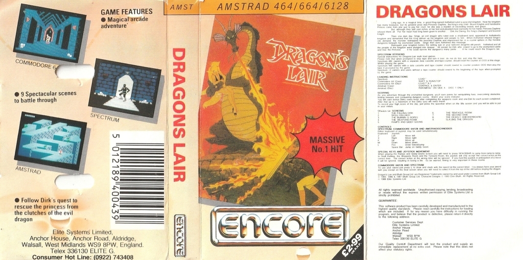 Dragon's Lair (Encore) sur Amstrad-CPC 464 - 2 - images, jaquette, scans, screenshots
