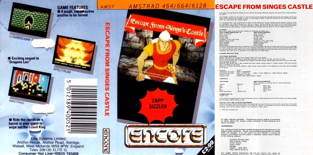 Dragon's Lair Part II : Escape From Singe's Castle (Encore) sur Amstrad-CPC 464 - 2 - images, jaquette, scans, screenshots