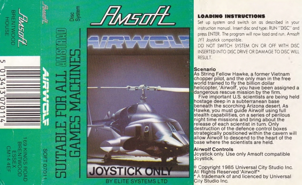 Airwolf - Uk sur Amstrad-CPC 6128 - 1 - images, jaquette, scans, screenshots
