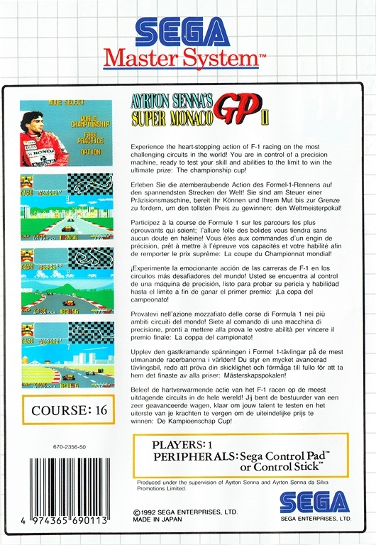 Titre alternatif Ayrton Senna's Super Monaco GP II (Classic Master System) / Super Monaco GP II