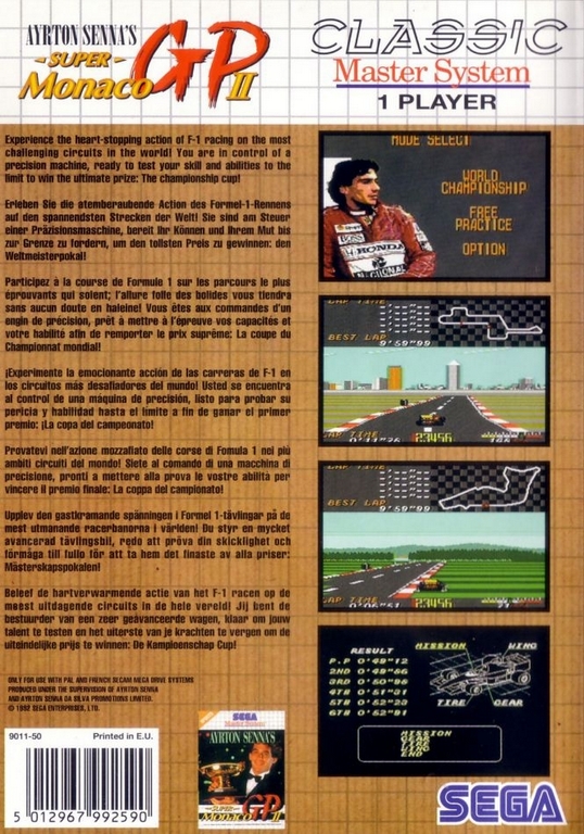 Ayrton Senna's Super Monaco GP II (Classic Master System) sur Master System - 1 - images, jaquette, scans, screenshots