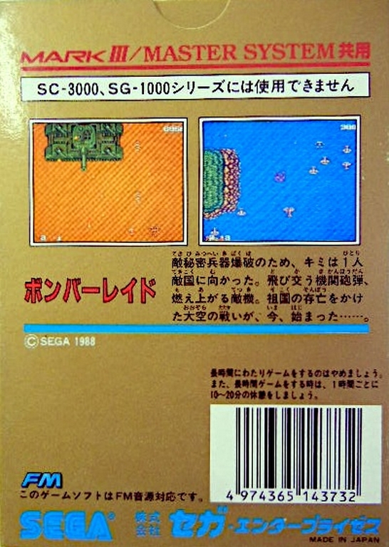 Bomber Raid - Japon sur Master System - 1 - images, jaquette, scans, screenshots