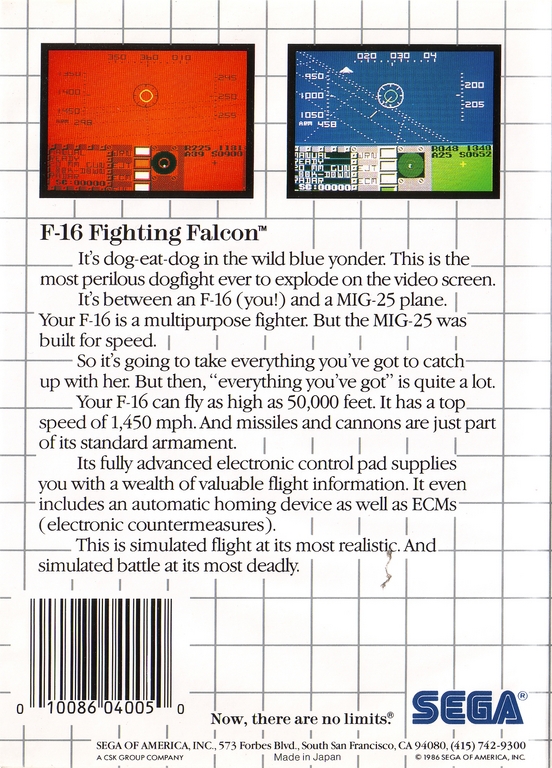 F-16 Fighter Falcon : The Sega Card- Usa sur Master System - 1 - images, jaquette, scans, screenshots