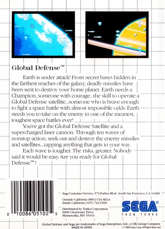 Global Defense - Usa sur Master System - 1 - images, jaquette, scans, screenshots
